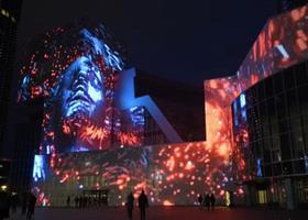 We utilize this projection technology to specially create video animation content that overlays on physical objects such as buildings, cars, and sculptures based on their shape and location.