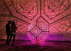 HYBYCOZO,即超空间绕行施工区,是一系列大型装置艺术和艺术品,通过光、影和感知来探究几何探索。