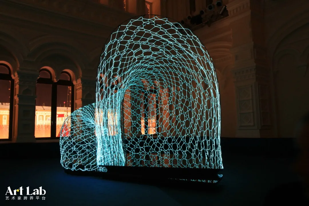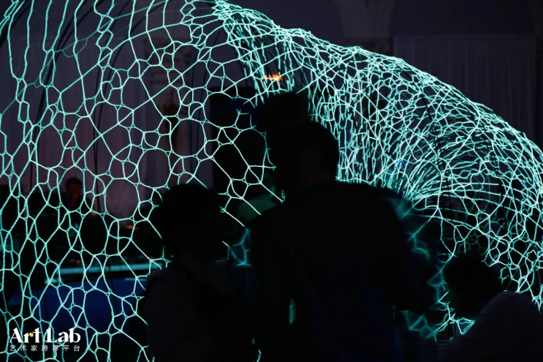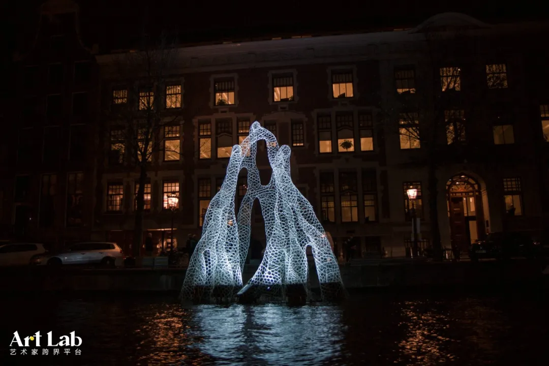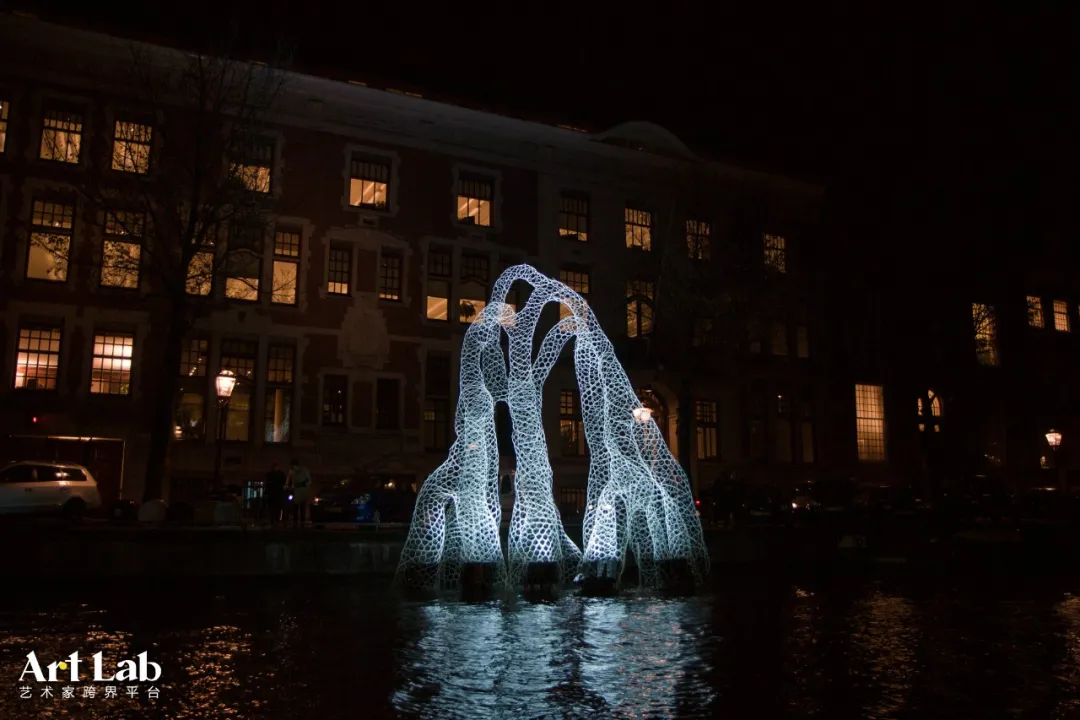 Arborescence这个作品形似于一株漂浮的瞬息即逝的植物,从水中生长出来,并发出忽明忽暗的光。