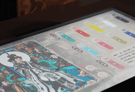 “壁上乾坤”以“沉浸体验”与“深度交互”双线并置,重构三清殿《朝元图》的视觉宇宙。行进式弧幕剧场通过40米巨幕与AI动态渲染技术,将286位神祇从壁画中“唤醒”,形成“众神朝元,满壁风动”的震撼场景。交互体验区则设置图像解读、数字填色等环节,使观众直观感受《朝元图》的色彩语言与象征意义。